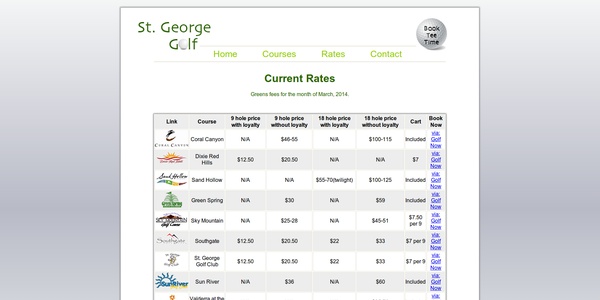 St. George Golf is a website that highlights the golf courses in the St. George, Utah area. It presents easily comparable information about each of the courses, as well as beautiful, zoom-able pictures. I used HTML markups along with CSS, Jquery, and PHP in the making of this site.