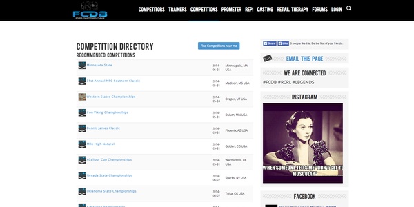 This web app was created by my team and I for a client at Velocity WebWorks. It is a place to go for fitness competitors (such as: body builders and bikini models) to find competition and events near them. They can also do research on other competitors and even find teams and sponsors. It includes a Geo Locator to find competitions, events, teams/trainers, and business' near the users location.
